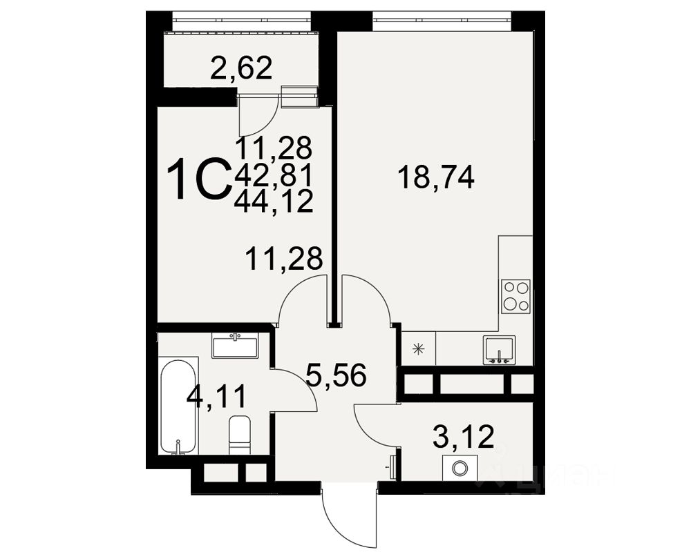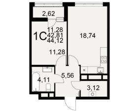 Общая площадь44,12 м²
