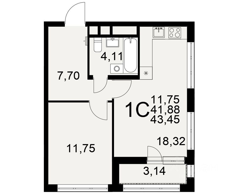 Общая площадь43,45 м²