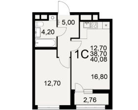 Общая площадь40,08 м²