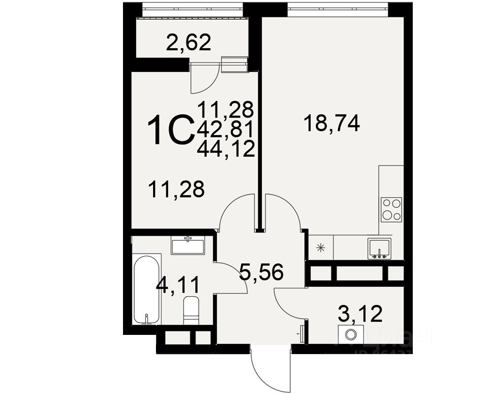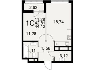 Общая площадь44,12 м²