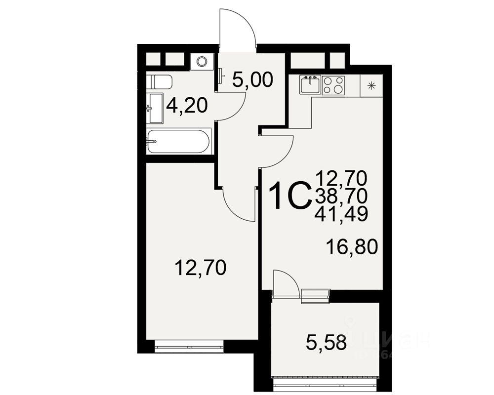 Общая площадь41,49 м²