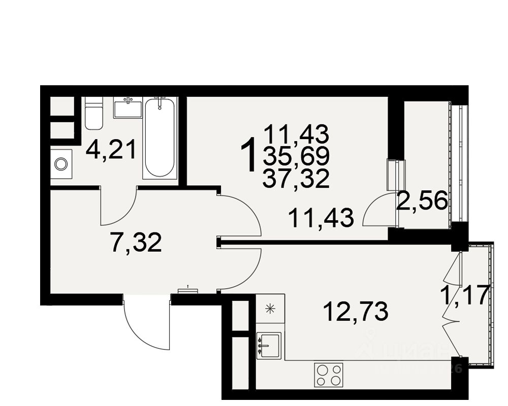 Общая площадь37,32 м²