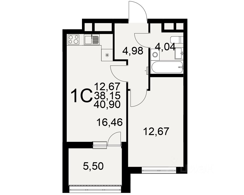 Общая площадь40,9 м²