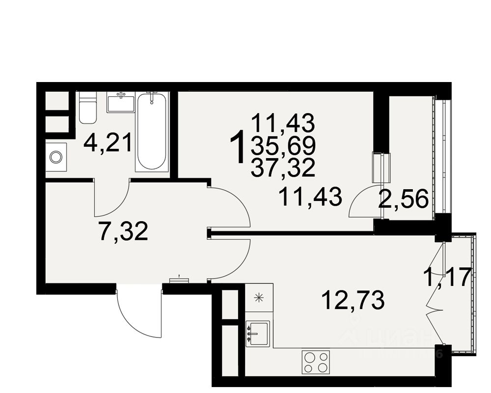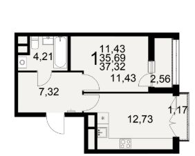 Общая площадь37,32 м²