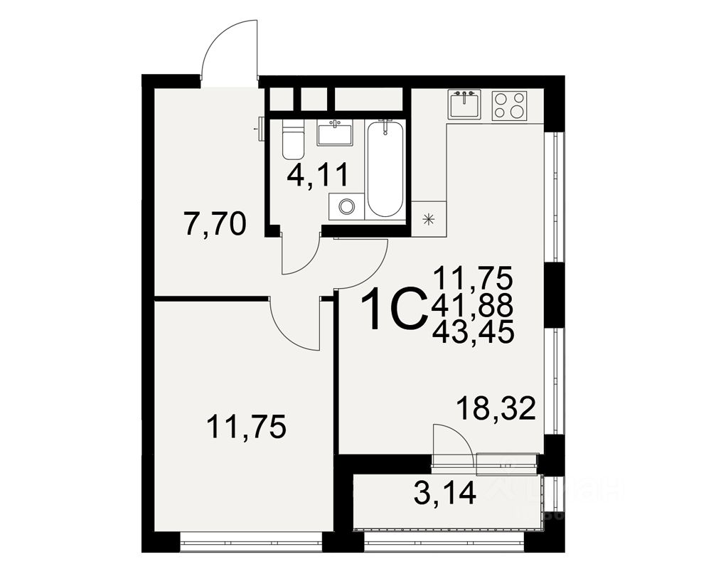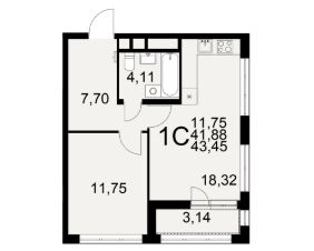 Общая площадь43,45 м²