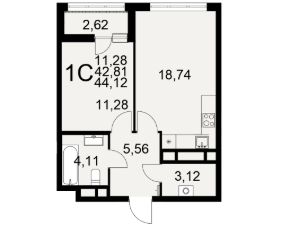 Общая площадь44,12 м²