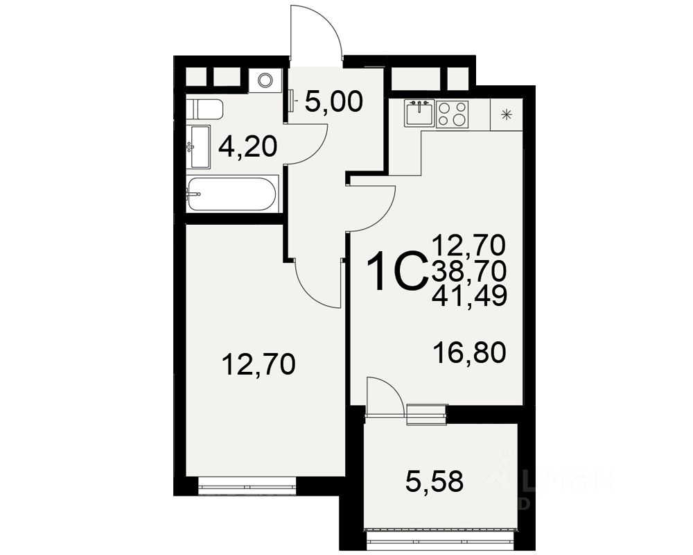 Общая площадь41,49 м²