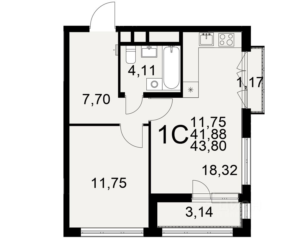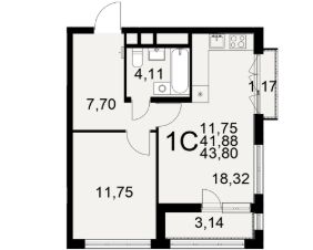 Общая площадь43,8 м²