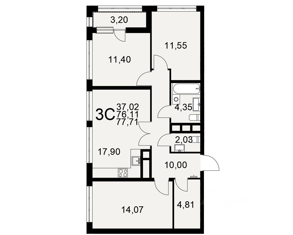 Продается 3-комн. квартира, 77,71 м²