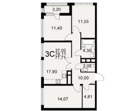 Общая площадь77,71 м²
