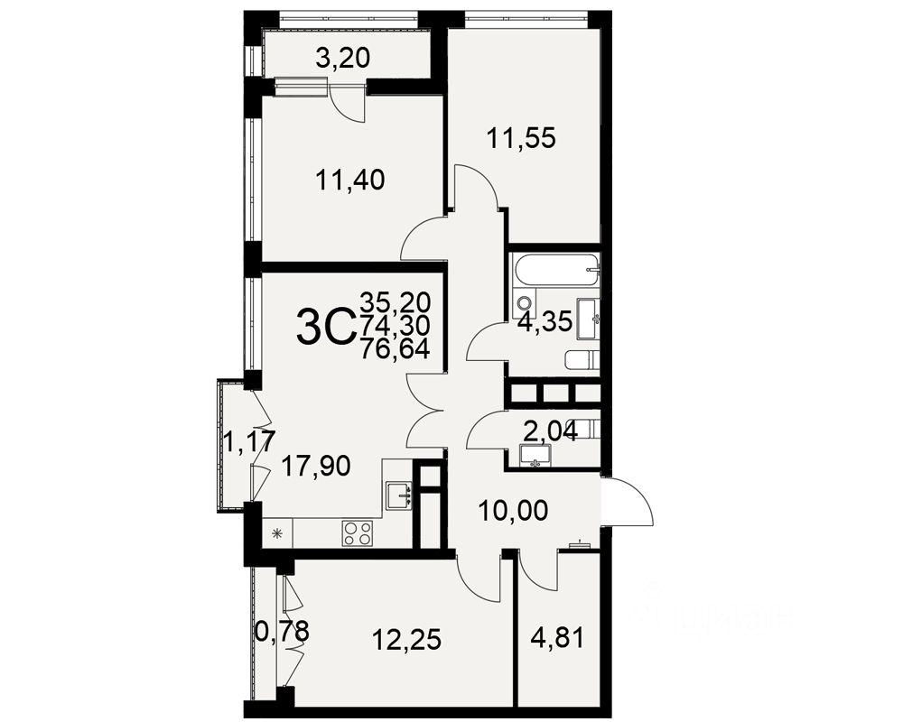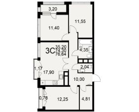 Продается 3-комн. квартира, 76,64 м²