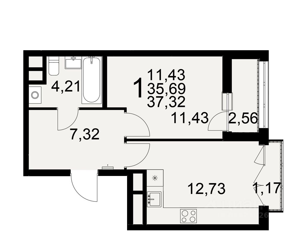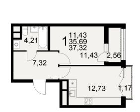 Общая площадь37,32 м²