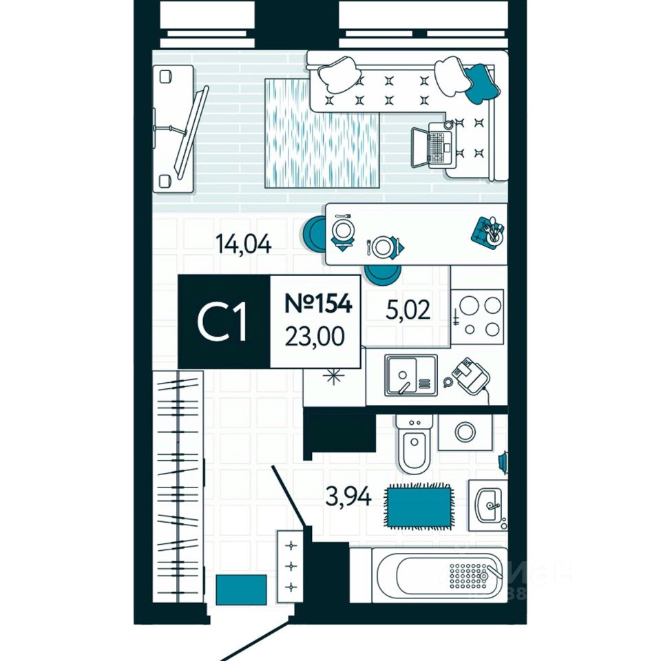 Общая площадь23 м²