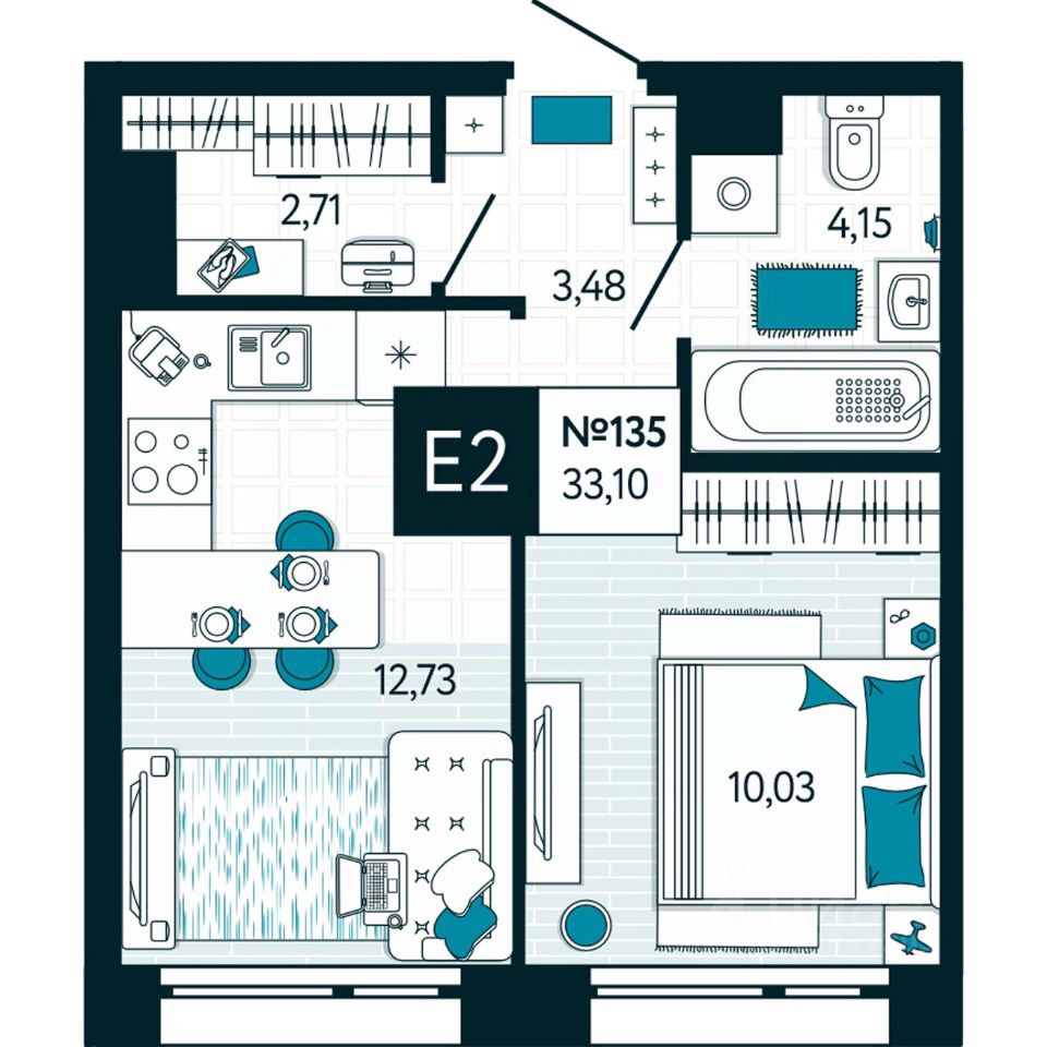 Общая площадь33,1 м²