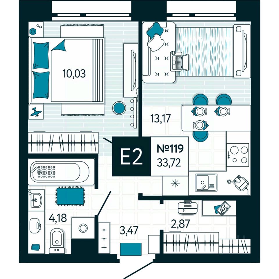 Общая площадь33,72 м²
