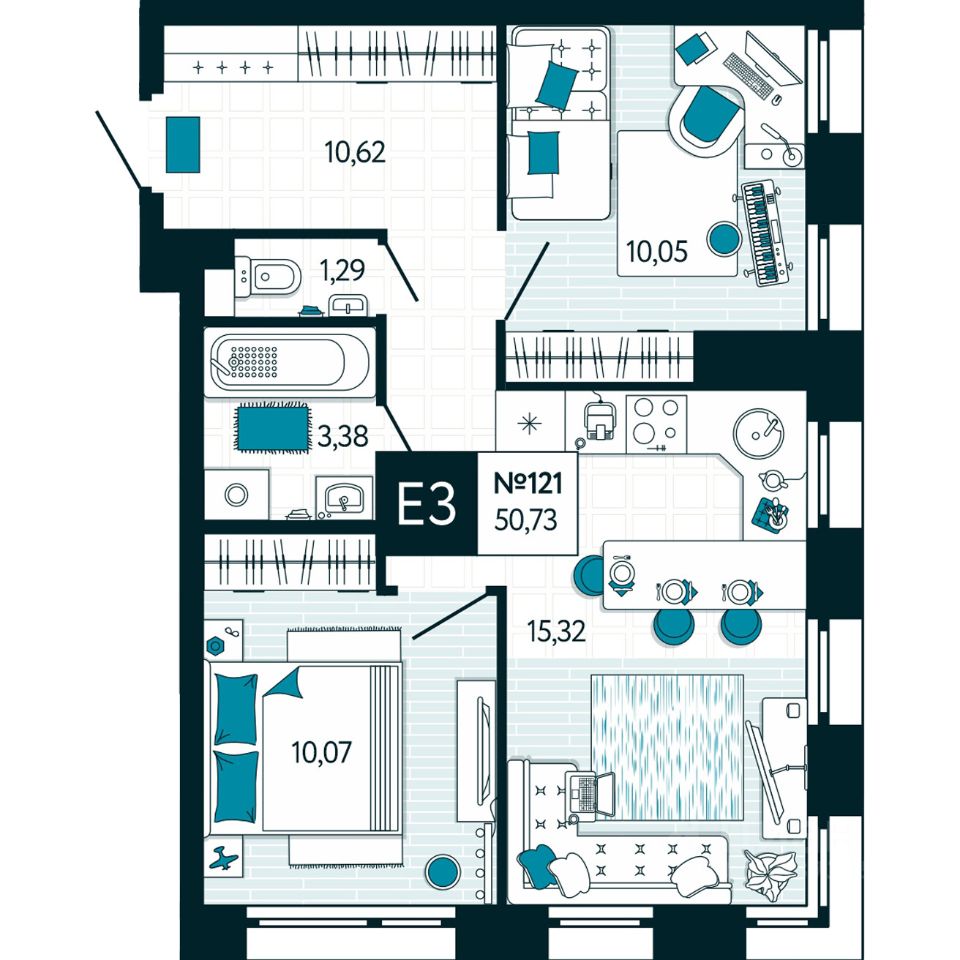 Общая площадь50,73 м²