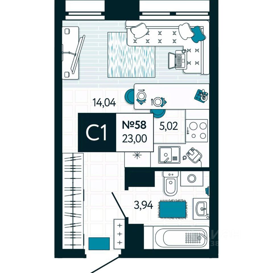 Общая площадь23 м²