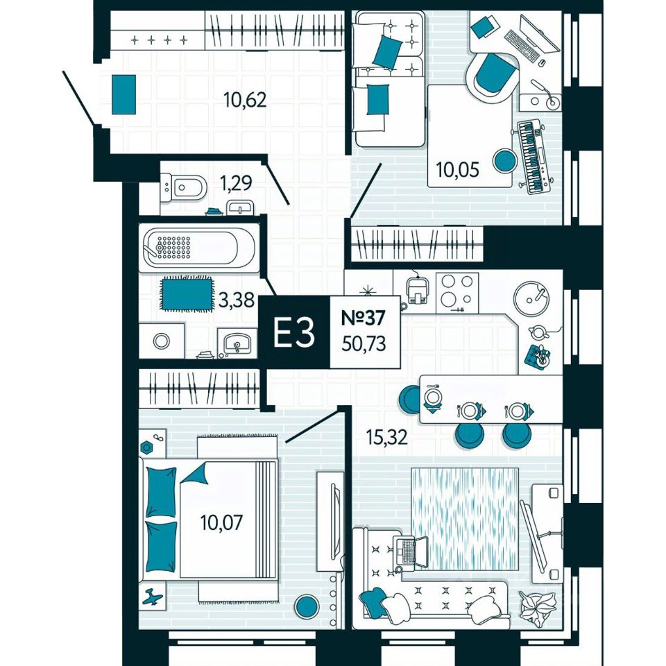 Общая площадь50,73 м²