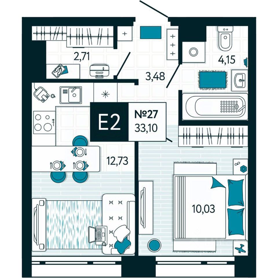 Общая площадь33,1 м²