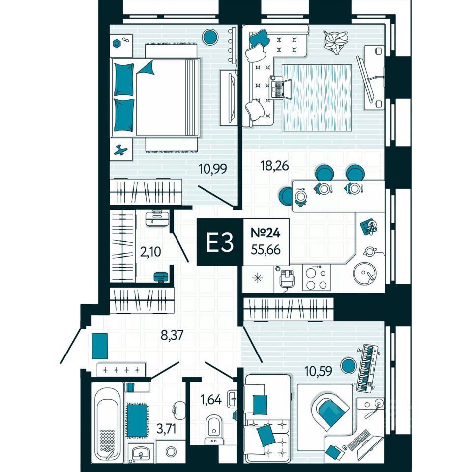 Общая площадь55,66 м²