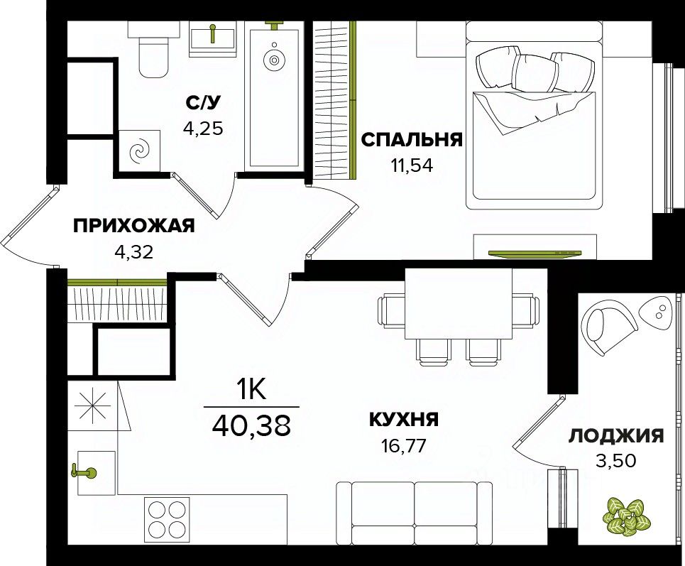 Общая площадь40,38 м²