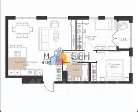 Номер в базе: 53216. В продаже шикарная двухкомнатная квартира, с огромной кухней/гостиной 32 метра. Квартира расположена на комфортном 2 этаже кирпичного дома, не большой этажности, что создает уютную атмосферу и приватность. Экологически чистый район, вокруг частный сектор. При этом хорошо развита инфраструктура, в комплексе расположены всевозможные магазины, остановки, пункты выдачи, поликлиника. Общая площадь квартиры 61.97 кв. м., жилая площадь 21.6 кв. м. Предчистовая отделка: штукатурка, электрика, выключатели, розетки, радиаторы отопления, что не мало важно балкон утеплен! Все черновые работы сделаны, вам остается только воплотить ремонт в своем вкусе.