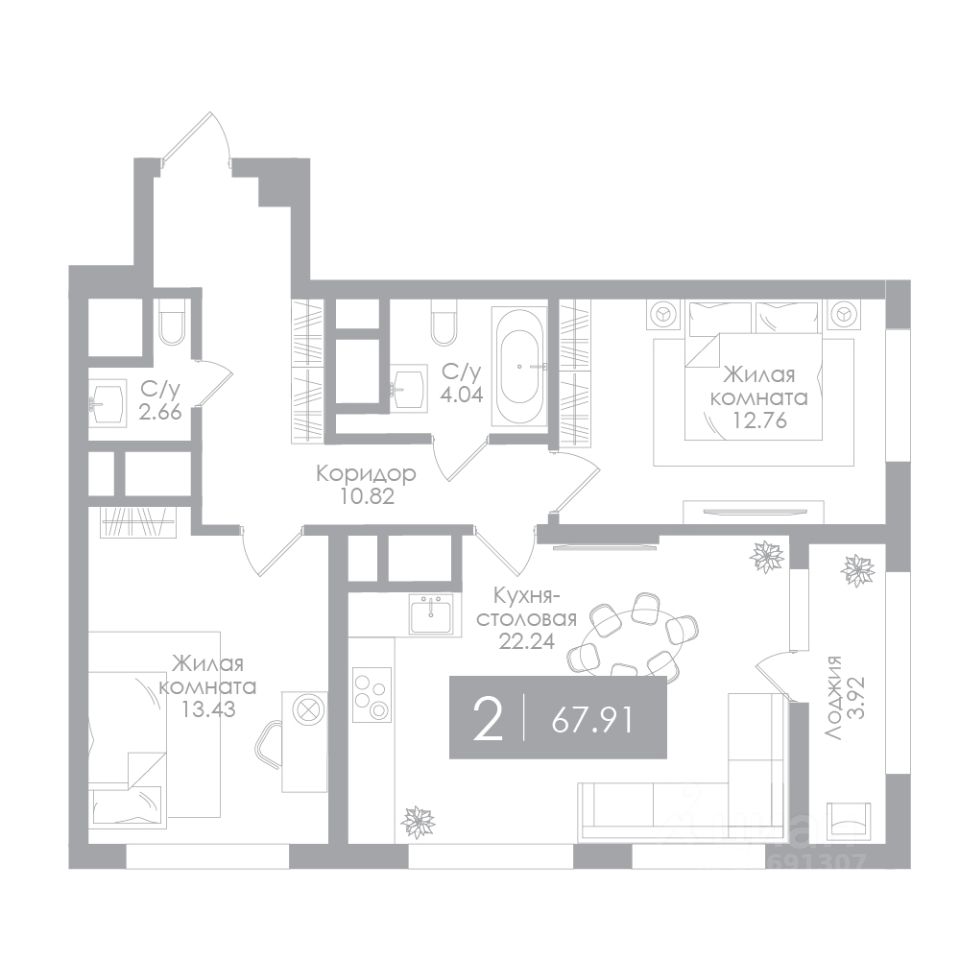Общая площадь67,91 м²