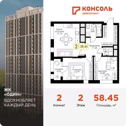 Продается двухкомнатная квартира 199 с чистовой отделкой в ЖК "Один" от застройщика