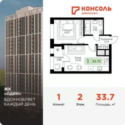 Площадь 33.7 на 14 этаже.