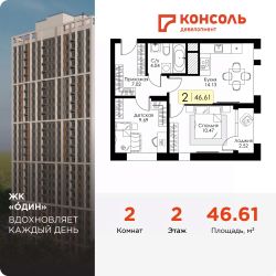 Площадь 46.61 на 6 этаже.