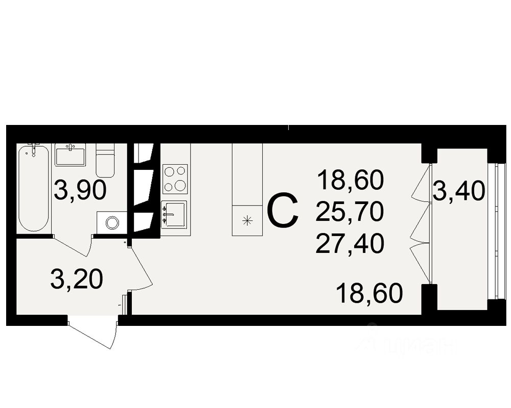 25,7 м²