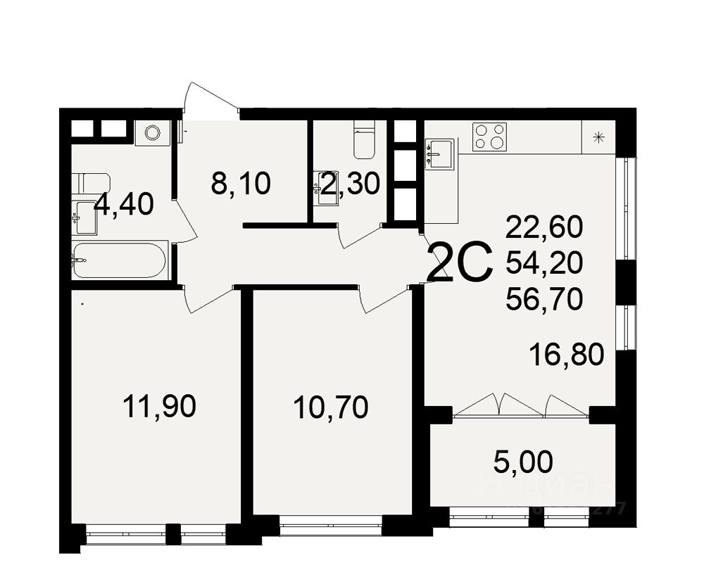 54,2 м²