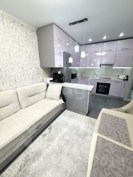 Кухня-гостиная: Дизайнерский проект! Встроенная техника Haier (варочная панель, духовка, посудомойка, вытяжка) — остаётся. Стильный кухонный гарнитур — остаётся.