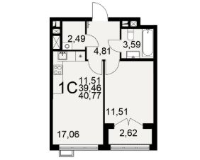 Общая площадь40,77 м²