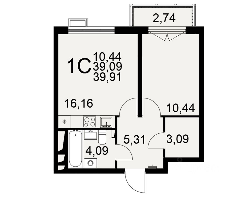 Общая площадь39,91 м²