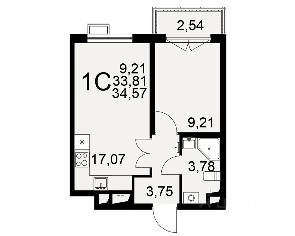 Общая площадь34,57 м²