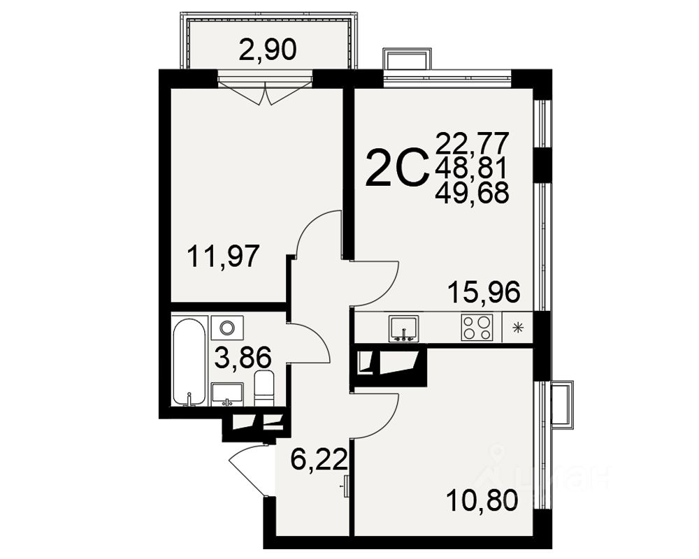 Общая площадь49,68 м²
