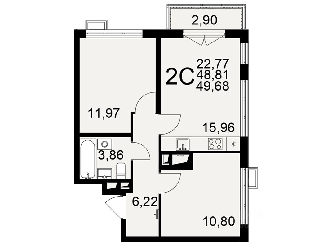 Общая площадь49,68 м²