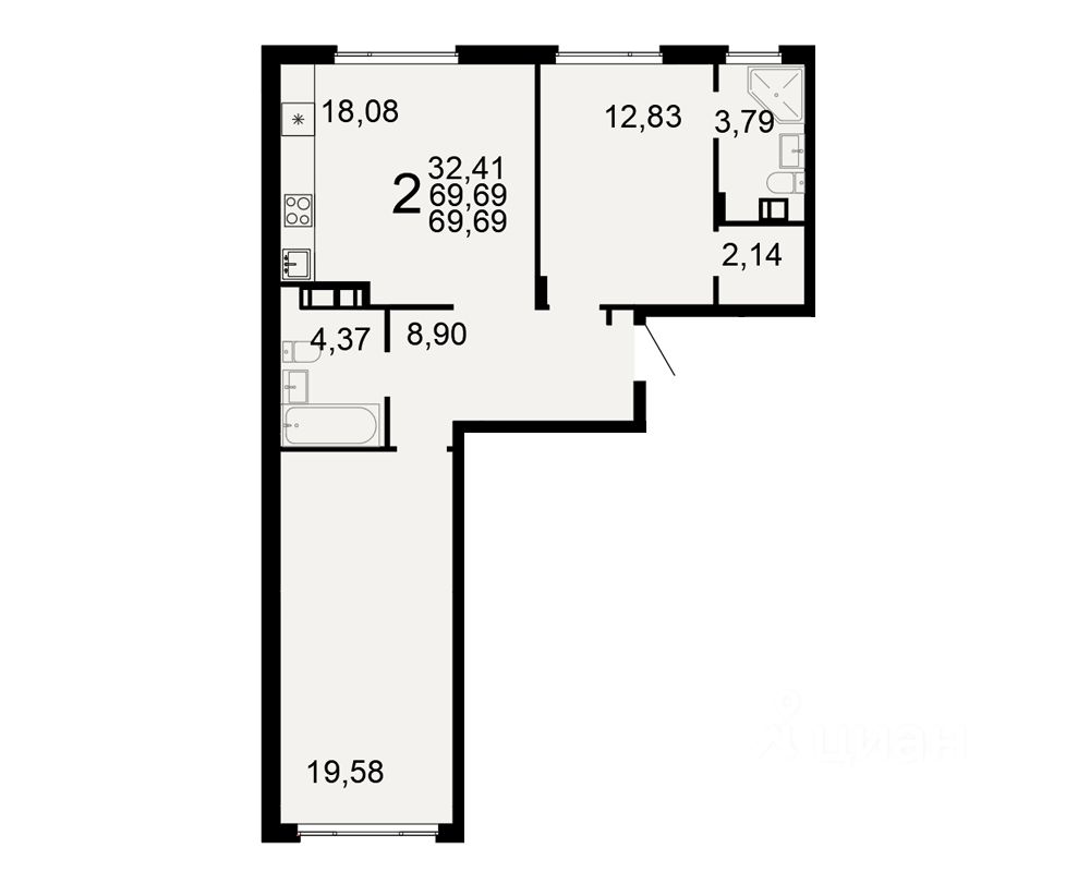 Общая площадь69,69 м²