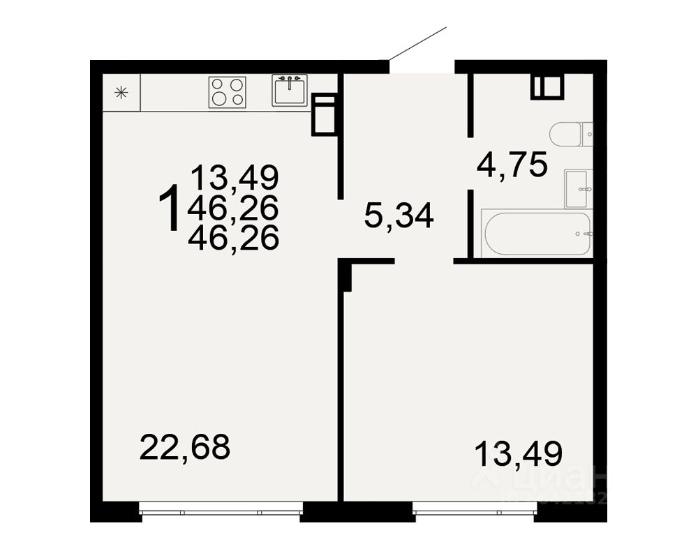 Общая площадь46,26 м²