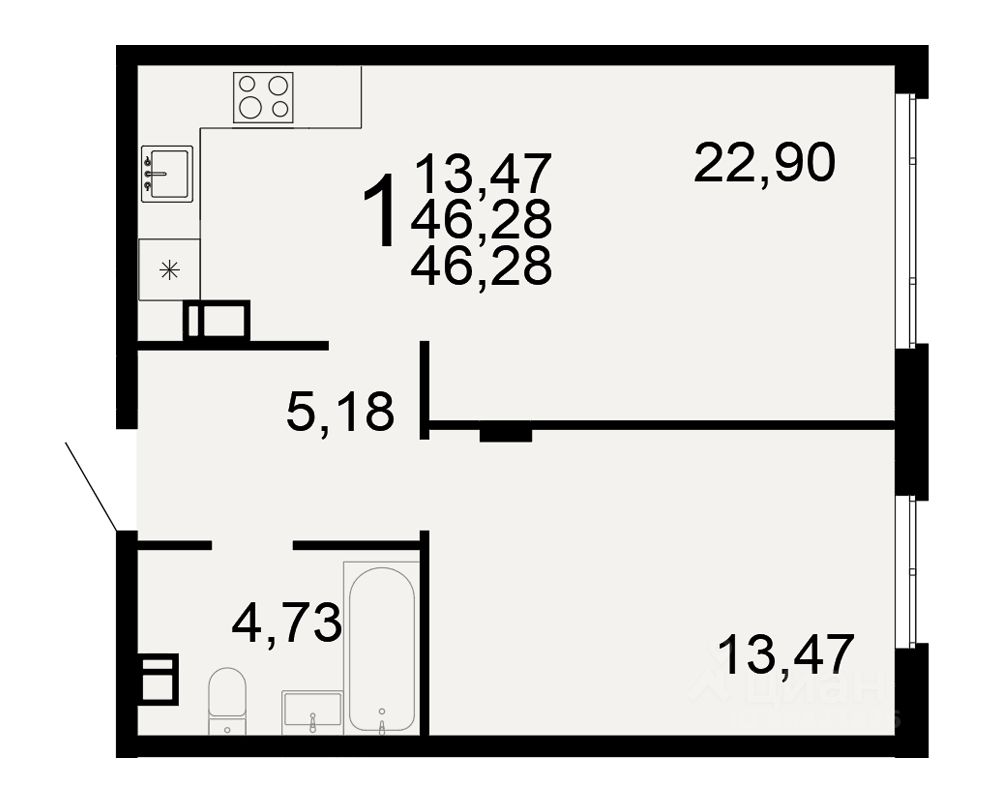 Общая площадь46,28 м²