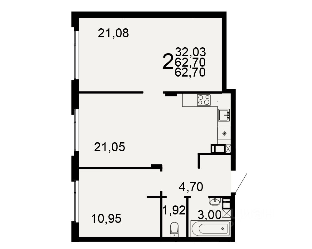 Общая площадь62,7 м²