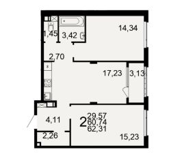 - электропроводка на негорючем медном кабеле 220 V с установкой электрического щита с электронными приборами учета на лестничной площадке и распределительного щита в квартире, с разводкой по квартире согласно проекту с установкой оконечных элементов (розетки, выключатели, патроны освещения); - штукатурка кирпичных стен, кроме ниш прохождения стояков водопровода и канализации, экрана ограждений лоджий; - стяжка пола; - шумоизоляция пола; - поверхностная, обмазочная гидроизоляция в санузле; - система отопления и горячего водоснабжения от котельной с установкой прибора учета расхода тепла; - установлены приборы (радиаторы)отопления с термостатическими головками и электрические полотенцесушители; - установлена силовая электрическая розетка для самостоятельной установки Участником электрической плиты; - смонтированы внутриквартирные стояки холодного и горячего водоснабжения (с установкой приборов учета), стояки водоотведения (канализация). Разводка труб водоснабжения и водоотведения (канализация) до сантехнических приборов не производится, сантехнические приборы: унитаз, ванна, мойка, раковина, не устанавливаются; - оконные проемы в комнате(-ах) и в кухне без выхода на лоджию(-и) остеклены ПВХ-профилем с отливом и подоконником; оконные проемы в комнате(-ах) и в кухне с выходом на лоджию(-и) остеклены ПВХ-профилем без отлива и подоконника, лоджия(-и) остеклена(-ы) ПВХ профилем с отливом, без установки подоконника, москитные сетки не предусмотрены, места запенивания монтажной пеной и укрывания гидроизоляционным герметиком не штукатурятся; - установлена входная металлическая дверь; - установлен видео домофон; - обеспечен доступ для подключения к телевизионному вещанию, интернету, телефонной линии (точка подключения-щит слаботочного оборудования, расположенный под потолком в квартире).