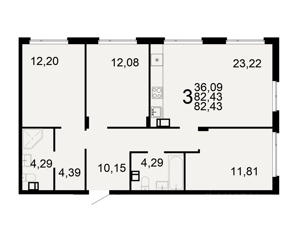 Общая площадь82,43 м²