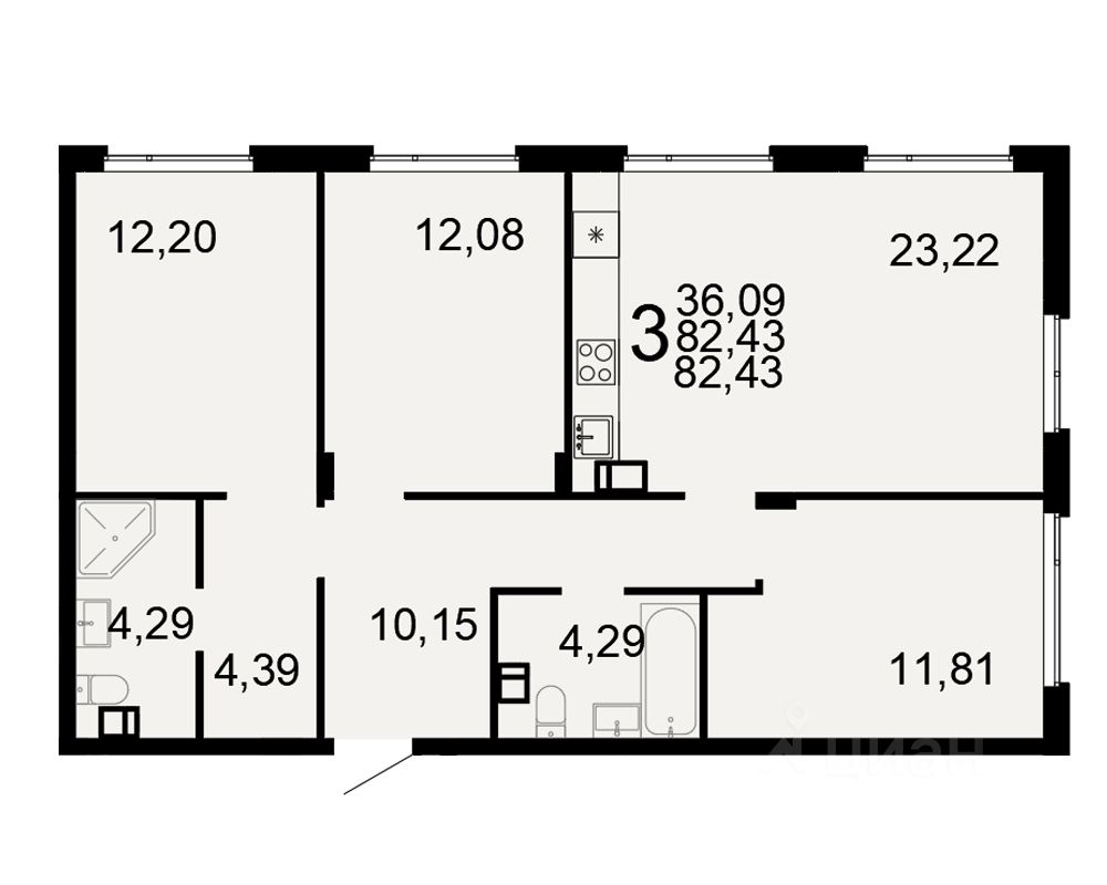 Общая площадь82,43 м²