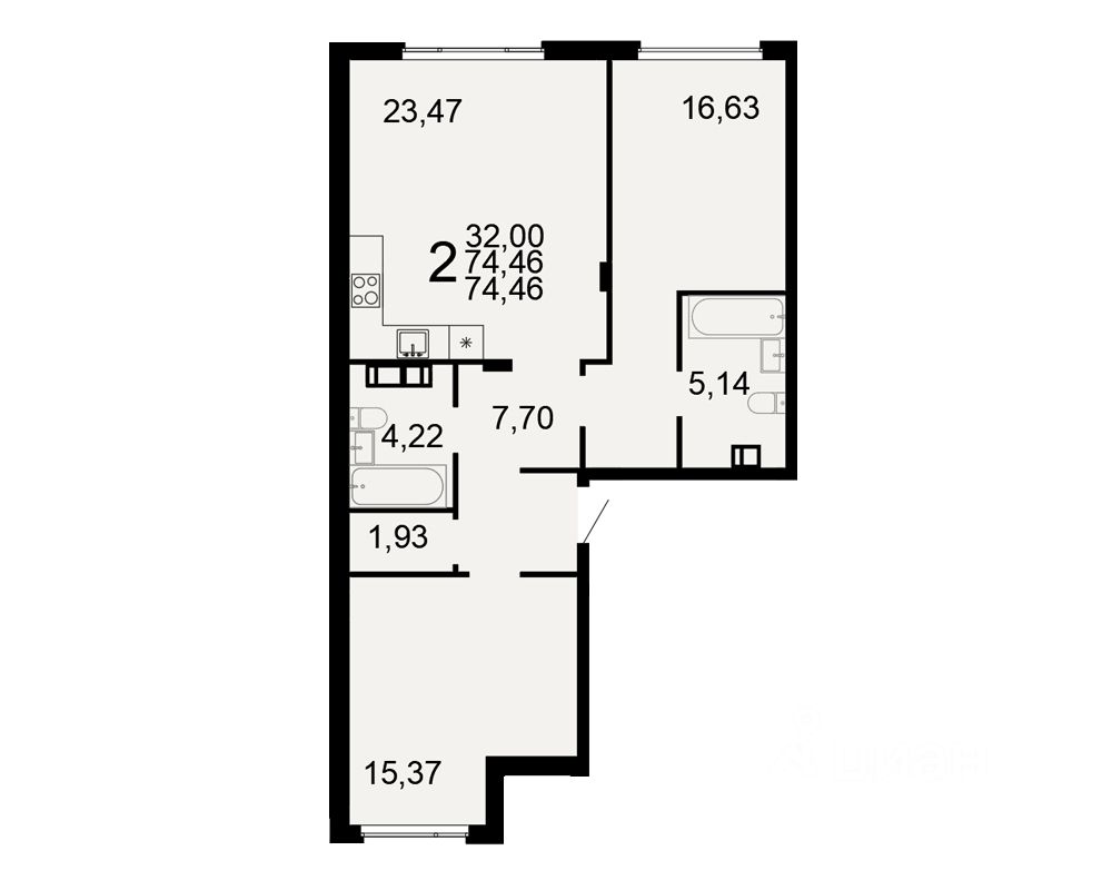 Общая площадь74,46 м²
