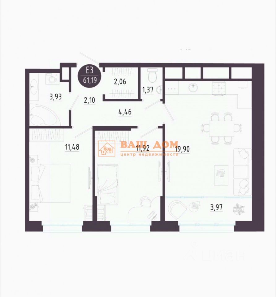 Арт. 126121458 Продается ОТ ЗАСТРОЙЩИКА большая ЕВРО 3. 61.02 кв м на 10 видовом этаже дома "Мятный" в ЖК "Пряничная Слобода".