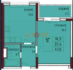 Стандартная планировка однокомнатной квартиры, с просторной комнатой и прихожей. Не угловая, просторная кухня с лоджией и возможностью сделать кухню-гостинную.