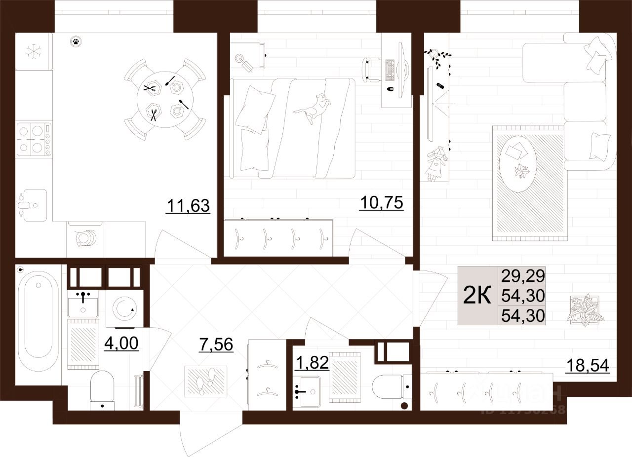 Продаётся 2-комнатная квартира в строящемся доме (Корпус 5), срок сдачи: III-кв. 2028, общей площадью 54.3 кв.м., на 5 этаже. РАСПОЛОЖЕНИЕ