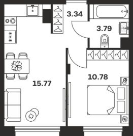 Общая площадь33,68 м²